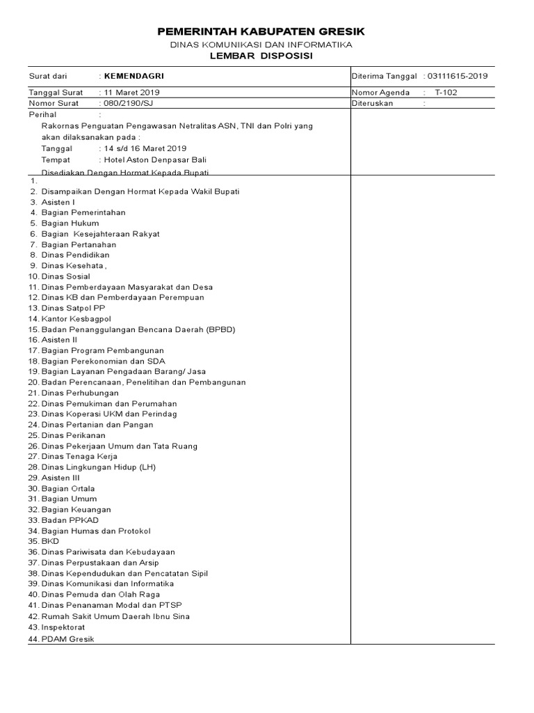 Membuat dua lembar disposisi, kemudian melampirkan surat berikut lembar disposisi 1 dan 2 serta kk iii untuk disampaikan kepada pimpinan unit pengolah. Masalah/nama/ tempat/orang/benda cara pengisian lembar pengantar naskah dinas rahasia. Ada yang menggunakan software atau tanpa software. Lembar disposisi adalah lembar isian untuk mencatat instruksi dari pimpinan berkaitan dengan proses tindak lanjut dari surat yang diterima dari pihak lain. Pekerjaan yang pertama dilakukan oleh bagian 193. Pada pola desentralisasi disposisi langsung pada suratnya. Kami merekomendasikan untuk mengisi 1,5 kali kapasitas ram fisik yang terpasang di pc. Isikan dari siapa pertama kali surat tersebut yang memberikan tanggapan, misal : Disposisi adalah suatu catatan, arahan, pengarahan, informasi atau instruksi dari pimpinan terhadap surat yang diterima untuk diproses lebih lanjut disposisi. • kolom isi ringkas diisi uraian ringkas tentang isi surat • kolom lampiran diisi sesuai 59. Apa yang dimaksud lembar disposisi pesan singkat pengertian cara jenis fungsi bagian penulisan contohnya oleh bitar diposting pada 25 februari 2021. Lembar disposisi puskesmas kota kabupaten tolitoli sulawesi tengahfull description. Cara menambah vram di pc dengan menggunakan 4 cara yang dapat anda lakukan dengan mudah.